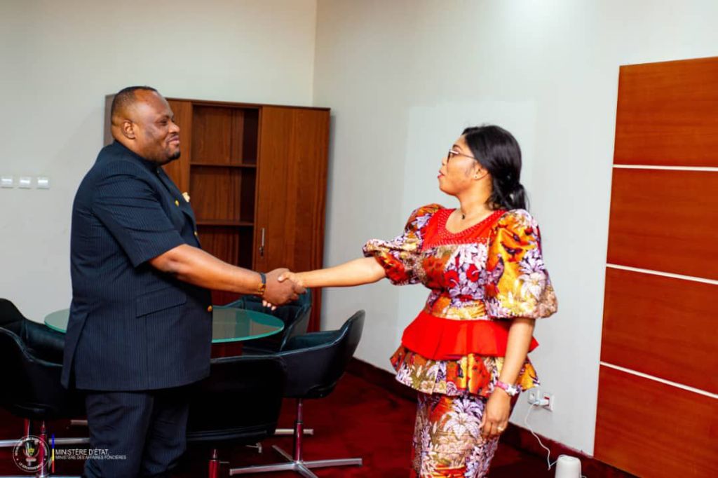 La Ministre d’État, Ministre des affaires foncières Acacia Bandubola Mbongo a reçu le mercredi 10 juillet 2024 dans son cabinet de travail, le Gouverneur de la ville de Kinshasa Daniel Bumba, venu solliciter l’appui du Gouvernement Central, avant le lancement bientôt de « l’opération Coup de Poing, une ville salubre ».
