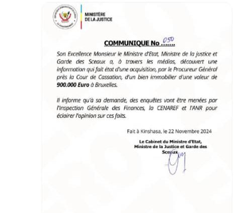 Le ministre d’État, ministre de la Justice, Constant Mutamba, a ordonné des enquêtes par l’Agence Nationale de Renseignements (ANR), l’Inspection Générale des Finances (IGF) et la Cellule Nationale des Renseignements Financiers (CENAREF) pour faire la lumière sur cette acquisition. Firmin Mvonde, nommé par le président Félix Tshisekedi il y a deux ans, n’a pas répondu aux sollicitations des médias concernant cette affaire.