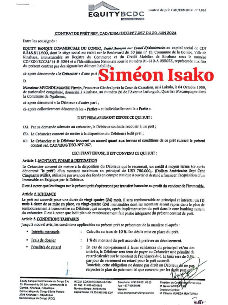 Les révélations sur l’achat de cet immeuble ont relancé le débat sur la rémunération des magistrats en RDC. Selon des documents publiés dans la presse, un crédit de 750 000 dollars, contracté auprès de la banque Equity BCDC, aurait permis à Mvonde de financer cette acquisition. Les Congolais s’interrogent sur la capacité du procureur général à rembourser un tel prêt, estimé à 37 500 dollars par mois, ce qui impliquerait un salaire mensuel de 123 750 dollars.