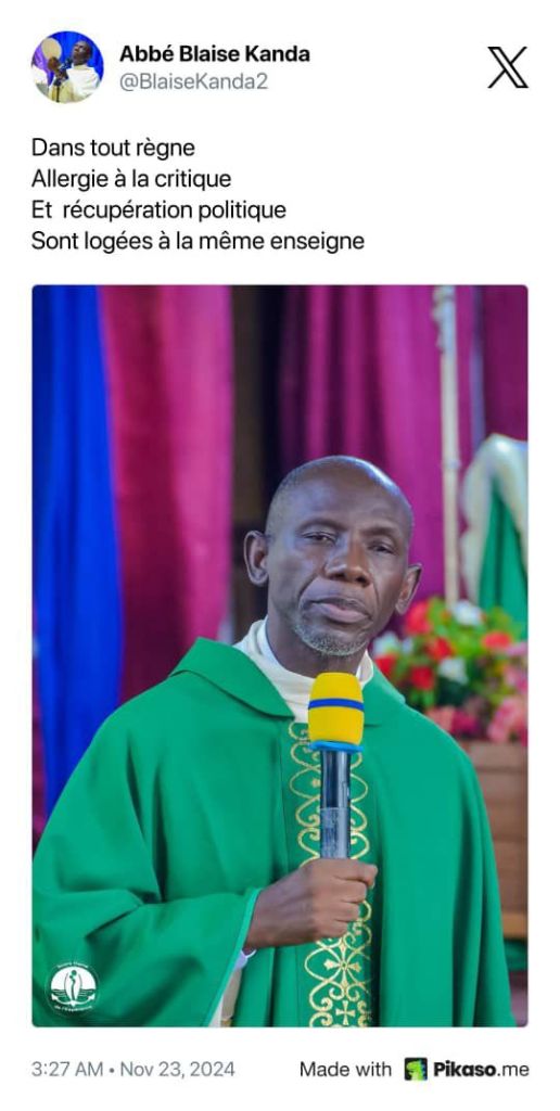 Dans son message, l’abbé Blaise Kanda a écrit : « Dans tout règne, allergie à la critique et récupération politique sont logées à la même enseigne. » Ces phrases, interprétées comme un soutien au pasteur Dalo, tombent à point nommé. En effet, lors de ses récentes prédications, l’Apôtre Dalo a vivement condamné les pratiques de corruption et de surfacturation observées chez certains politiciens chrétiens, des comportements qu’il juge indignes des valeurs chrétiennes.