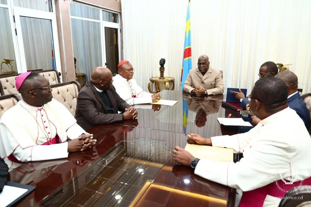 Ce dimanche 2 Février dans la soirée, dans ses bureaux de la Cité de l’Union Africaine, le Président de la République Félix Antoine Tshisekedi Tshilombo a reçu une délégation conjointe de la Conférence Épiscopale Nationale du Congo (CENCO) et de l’Église du Christ au Congo (ECC) conduite par le Cardinal Fridolin Ambongo, en réponse à une demande d’audience écrite lui adressée le week-end dernier.