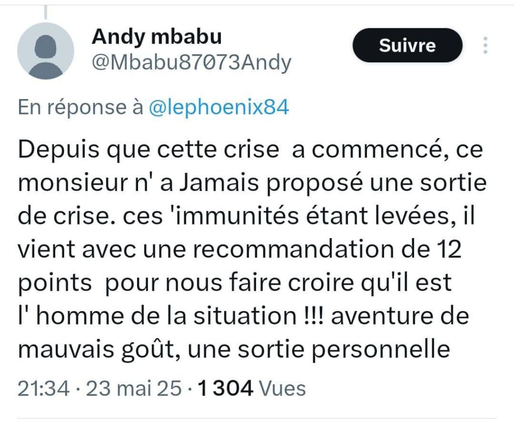 Cet aspect soulève des préoccupations sur la nature de son implication dans le débat politique actuel et sur son rôle potentiel dans l’avenir du pays. « Hier, les Congolais ont dit : voici l’homme qu’il faut à la tête de la RDC », écrit un internaute convaincu, tandis qu’un autre oppose : « Historien et il a raté une raison de se taire. »