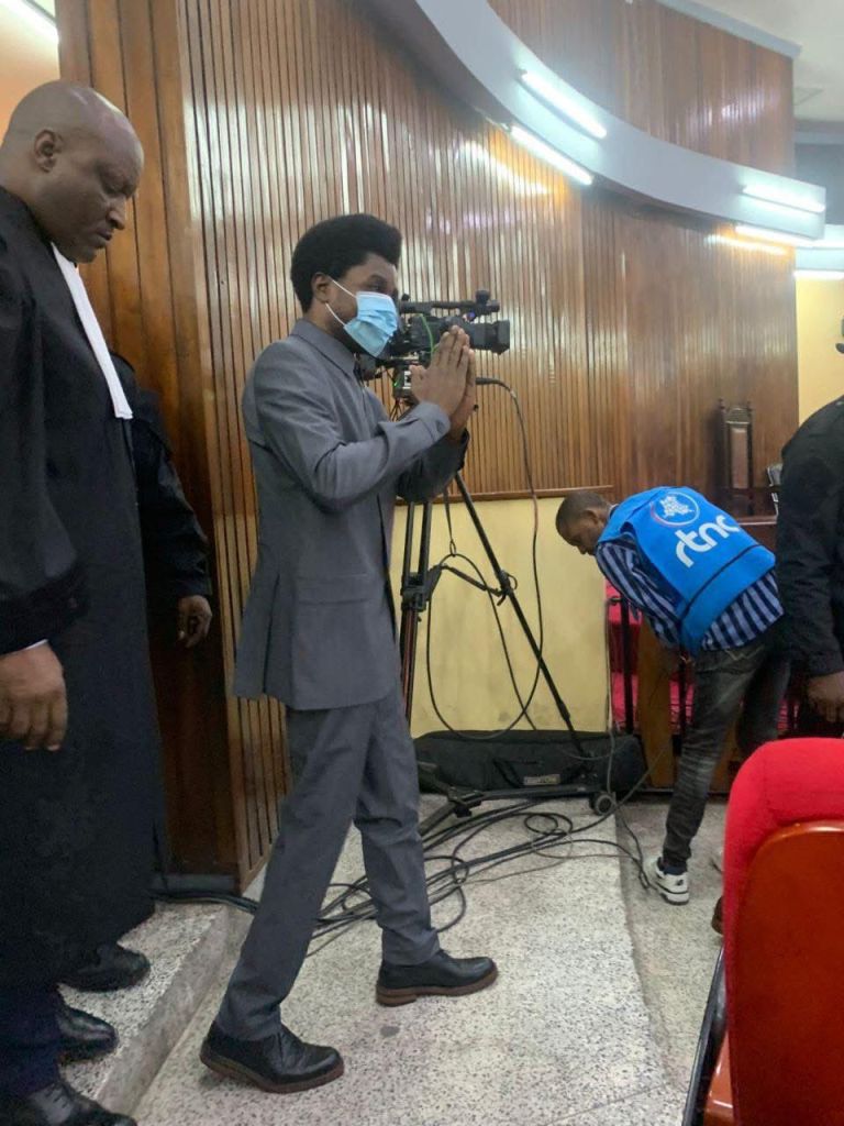 Constant Mutamba lors de la première audience son défunt Directeur de cabinet en arrière plan