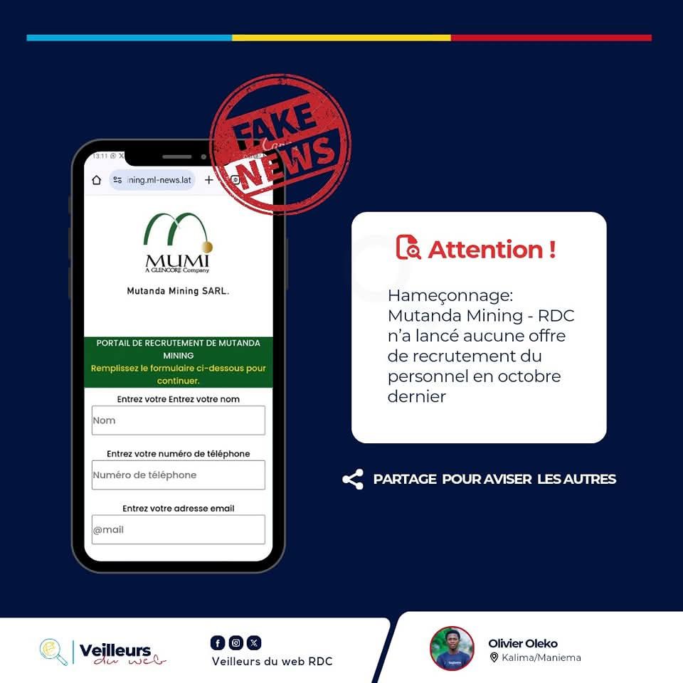 En 2024, un offre de recrutement faux au nom de Mutanda mining a été diffusée dans les réseaux sociaux