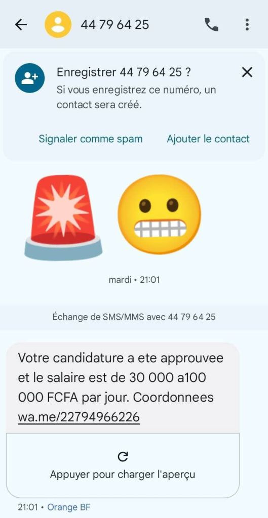 Dans ce stratagème bien rôdé, les cybercriminels diffusent de fausses annonces via email, réseaux sociaux ou plateformes de messagerie mobile. Le but: inciter la victime à cliquer sur un lien frauduleux, souvent présenté comme une opportunité d’emploi ou un formulaire pour recevoir une aide financière. Ce lien mène vers un site trompeur, imitant les plateformes officielles des institutions concernées. Une fois les informations personnelles saisies par la victime — identité, numéro de téléphone, parfois même les identifiants de services Mobile Money — les pirates les exploitent à des fins frauduleuses: usurpation d’identité, ouverture de comptes fictifs, détournement de fonds.
