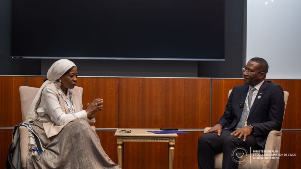 À Doha, capitale du Qatar, le mercredi 05 novembre, en marge du Deuxième Sommet mondial pour le développement social (WSSD2), le Ministre d’État, Ministre du Plan et de la Coordination de l’Aide au Développement, Guylain Nyembo, a rencontré Madame Diene Keita, Directrice exécutive du Fonds des Nations Unies pour la Population (UNFPA).