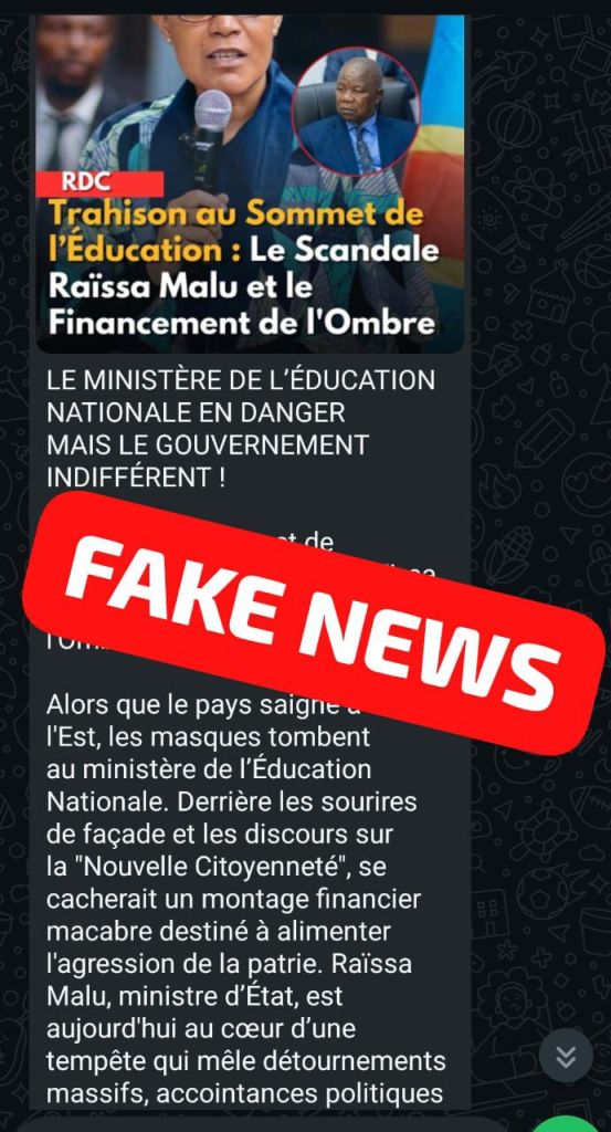 La Ministre d’État en charge de l’Éducation Nationale et Nouvelle Citoyenneté, Raïssa Malu, sort du silence pour dénoncer ce qu’elle qualifie de « campagne d’intoxication et de manipulation » visant à ternir son action réformatrice. Au cœur de la polémique, la suspension récente de l’ancien Directeur national de la DINACOPE.